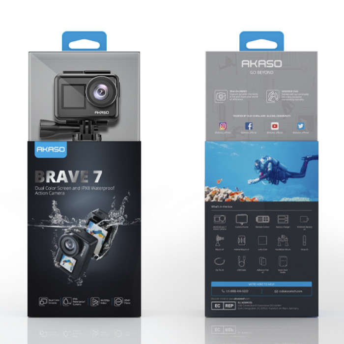 | Others | Six-axis image stabilization (EIS 2.0) Handfree Voice Control Time Lapse 3 x Zoom Smart remote control with screen External Mic Supported AKASO Go app with video editing features | |